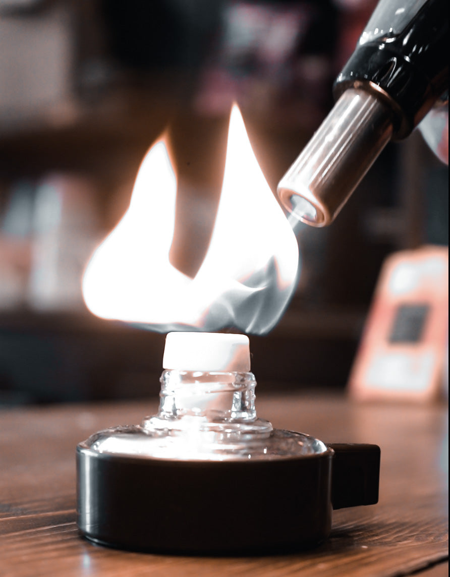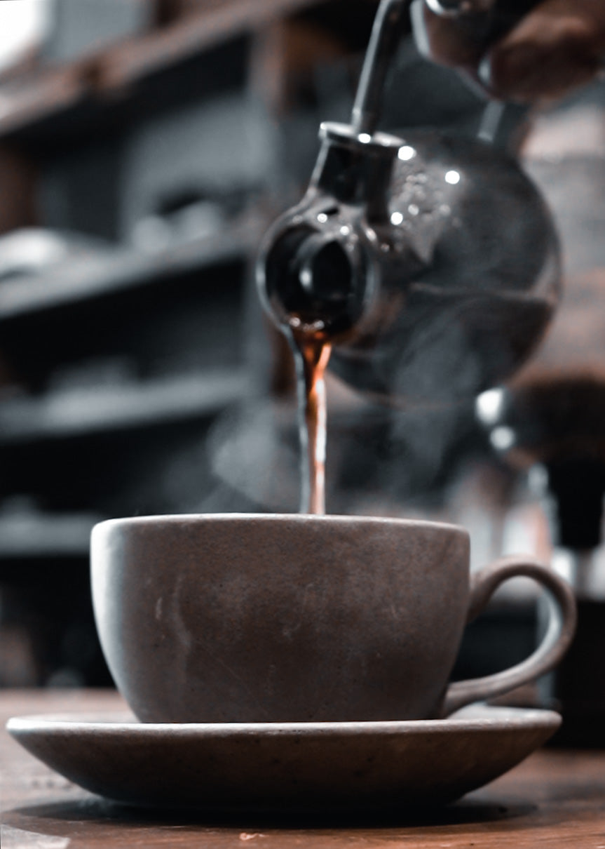 source and put out the flame. Wait for the vacuum to do its job. As the bottom chamber cools, a vacuum is created, which draws the coffee back down through the filter and into the bottom chamber. From here, the coffee is good to go!