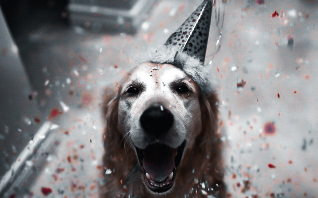 Check out this dog in a party hat.